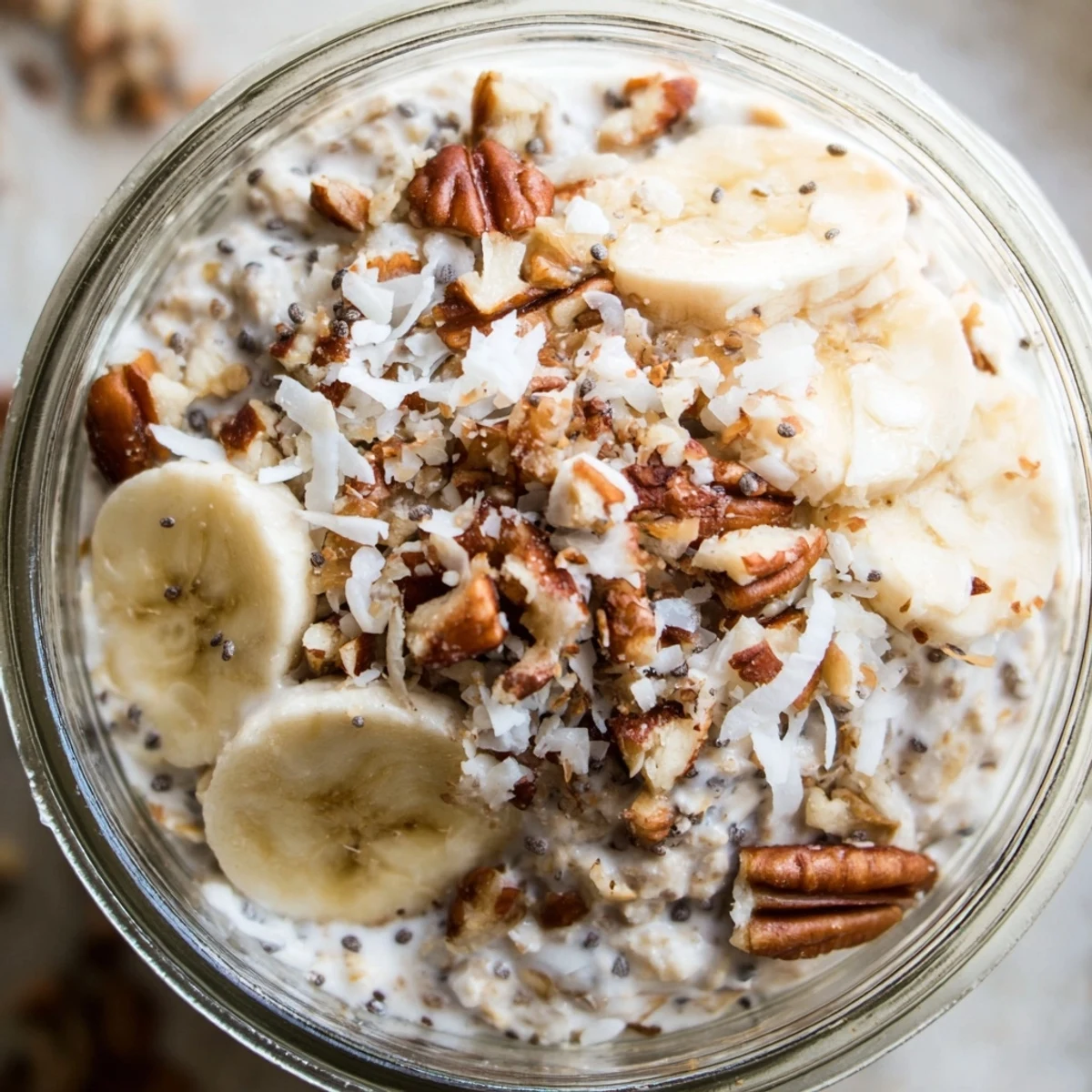 The real magic happens between the creamy base and crunchy toppings. Some days I add sliced almonds instead of pecans or swap bananas for diced mango. That contrast is what keeps this interesting morning after morning.