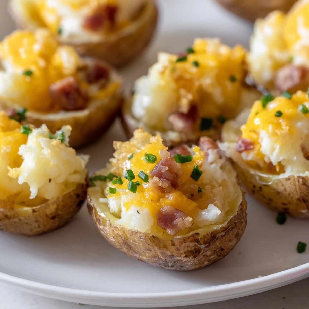 The preparation involves baking the potatoes until tender, scooping out the flesh, and mixing it with savory ingredients before returning them to the oven for a final golden finish. Each bite offers a satisfying crunch followed by a rich, cheesy interior that keeps guests coming back for more.