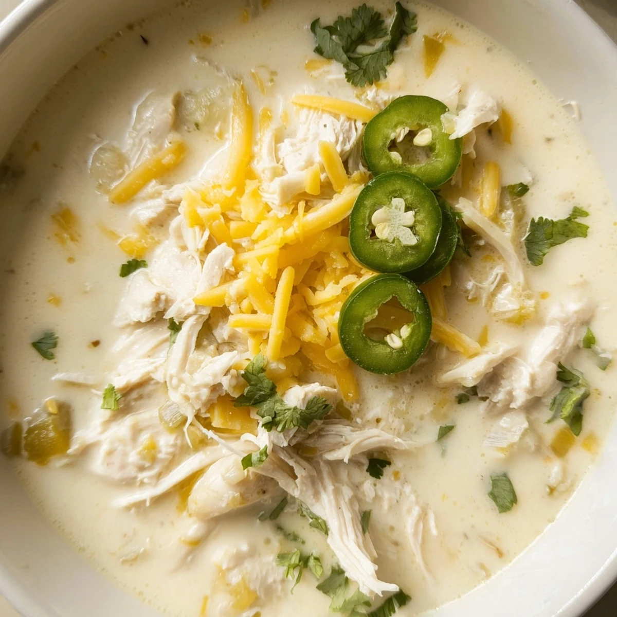 This creamy white chicken chili combines tender shredded chicken with green chiles, aromatic spices, and a rich dairy base for ultimate comfort. Ready in just 45 minutes, it delivers hearty satisfaction while keeping carbs minimal. The mild heat from chiles and spices balances perfectly with the velvety texture from cream cheese and heavy cream.