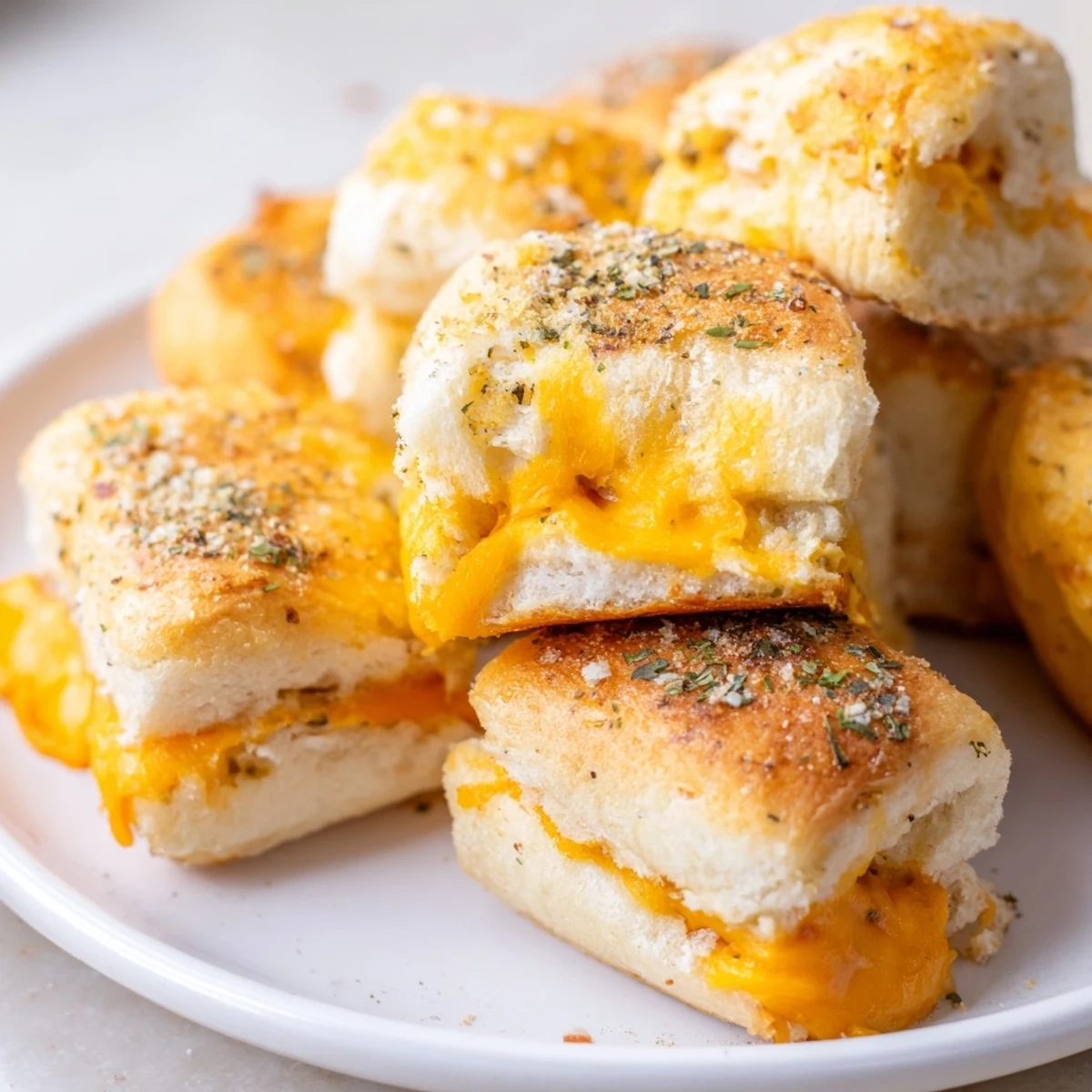 These irresistible mini sandwiches start with a package of sweet Hawaiian rolls, sliced horizontally while keeping them connected. The bottom layer gets an optional spread of Dijon mustard and mayonnaise, then piled high with sharp cheddar cheese. After reassembling, brush the tops generously with melted butter seasoned with garlic powder and parsley. Bake covered first to melt the cheese, then uncover to achieve golden-brown tops. The result is a tray of 12 pull-apart sandwiches with perfectly crispy exteriors and ultra-gooey centers. The natural sweetness of the Hawaiian rolls balances beautifully with savory cheddar, creating that addictive sweet-savory flavor profile everyone loves.