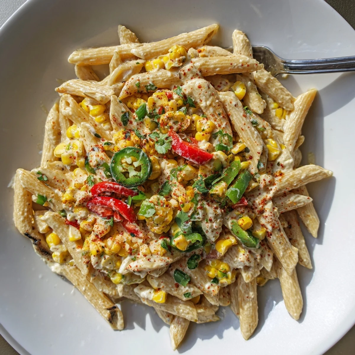 This creamy, Mexican-inspired pasta salad brings smoky grilled corn, tender short pasta, cotija cheese, fresh lime, and a zesty chili-mayo dressing together. Cook pasta to al dente, char the corn on a hot grill or skillet, whisk mayonnaise, sour cream, lime juice and spices, then toss with peppers, scallions, cilantro and cheese. Chill at least 30 minutes for best flavor and serve chilled or at room temperature.